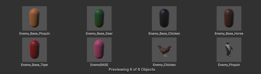 Multiple types of enemies - winter(deer, pinguin), forest(deer, chicken), desert (chicken, tiger).
