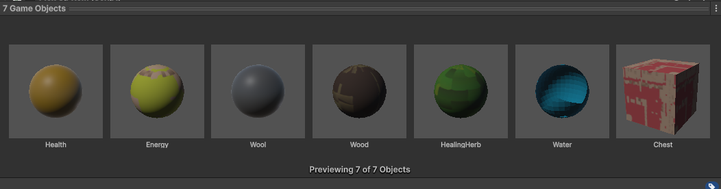 Multiple types fo collectibles - some spawned randomely in different biomes, some drop from enemies after defeat with different probality rate.
